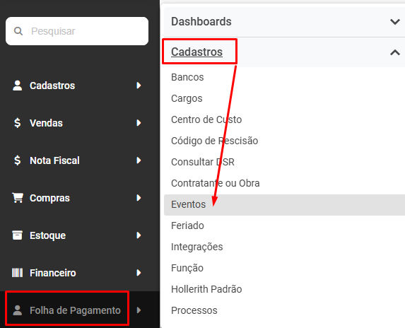 Agora, faça a conferência dos Eventos de Desconto da Pensão Alimentícia