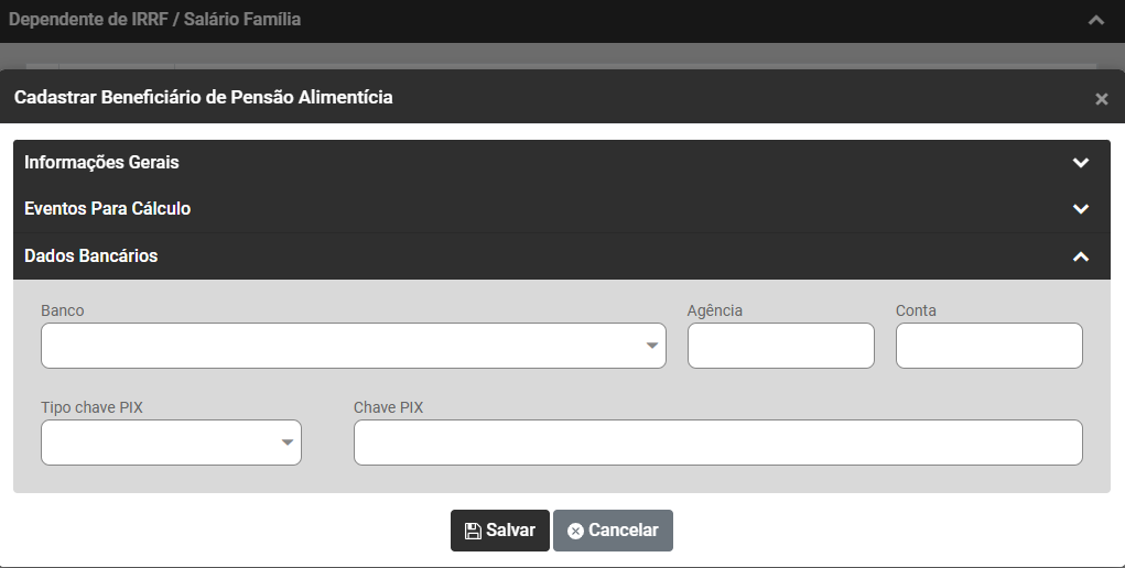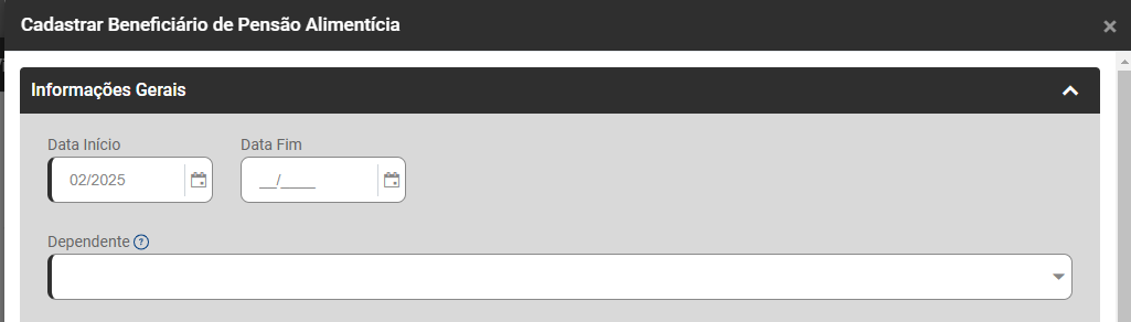 Acesse o campo Beneficiário de Pensão Alimentícia
