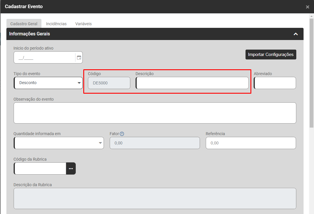 Se a decisão judicial determinar um cálculo diferente do padrão poderá criar um evento novo na faixa disponível para Desconto no menu Folha de Pagamento>Cadastros>Eventos