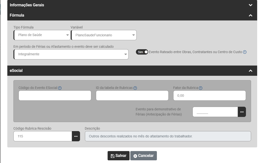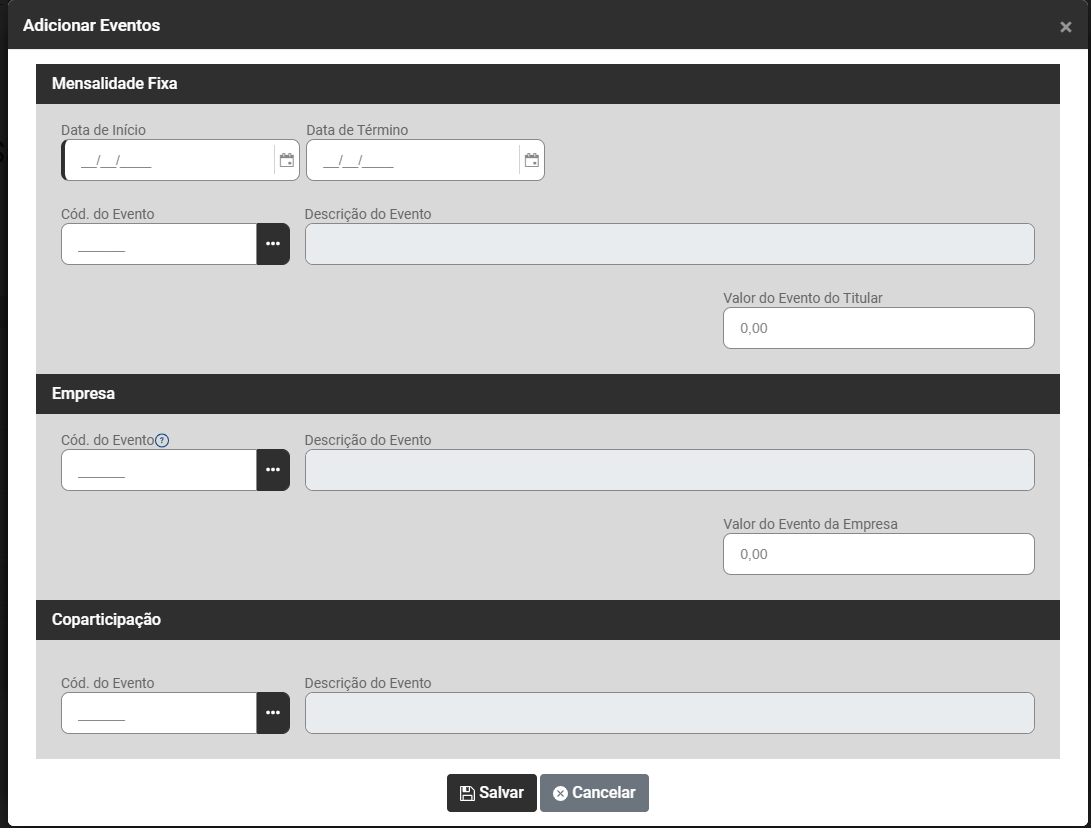 - Evento DE0016 - Plano de Saúde dos Funcionários