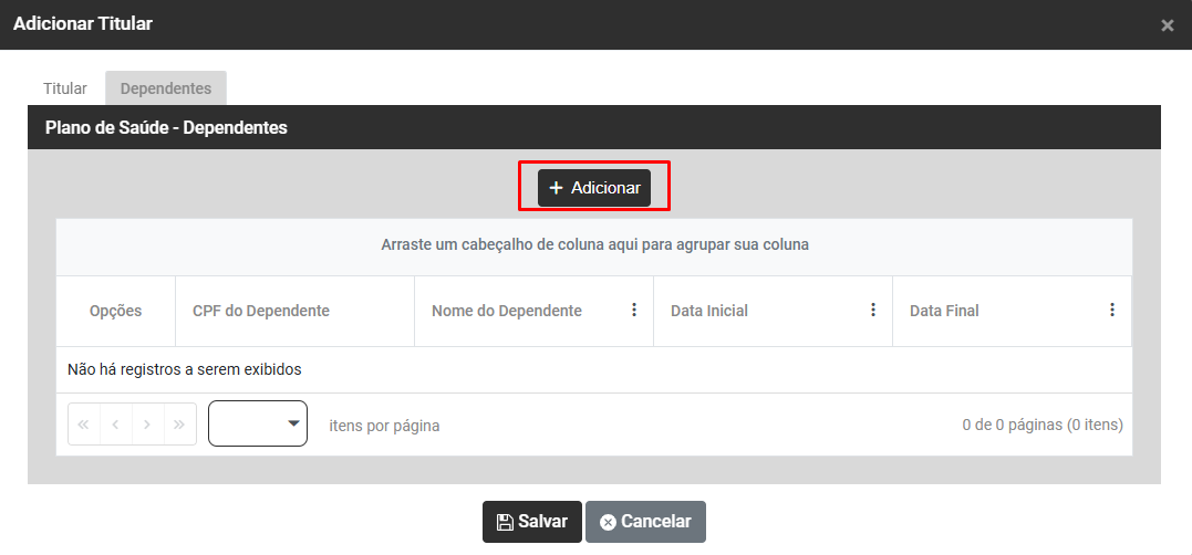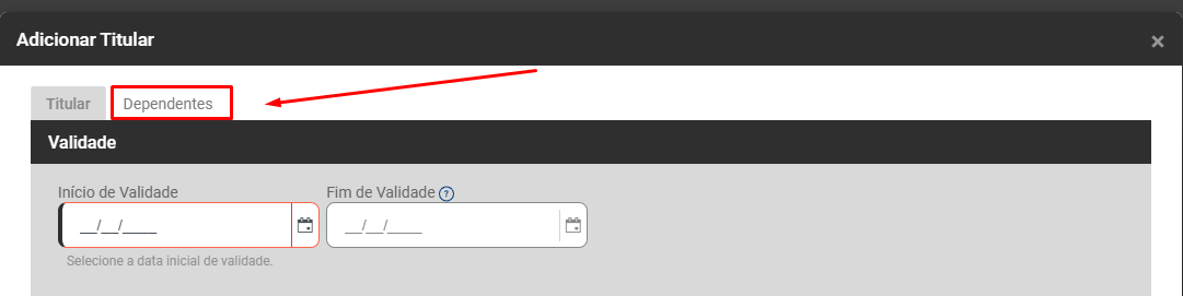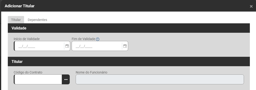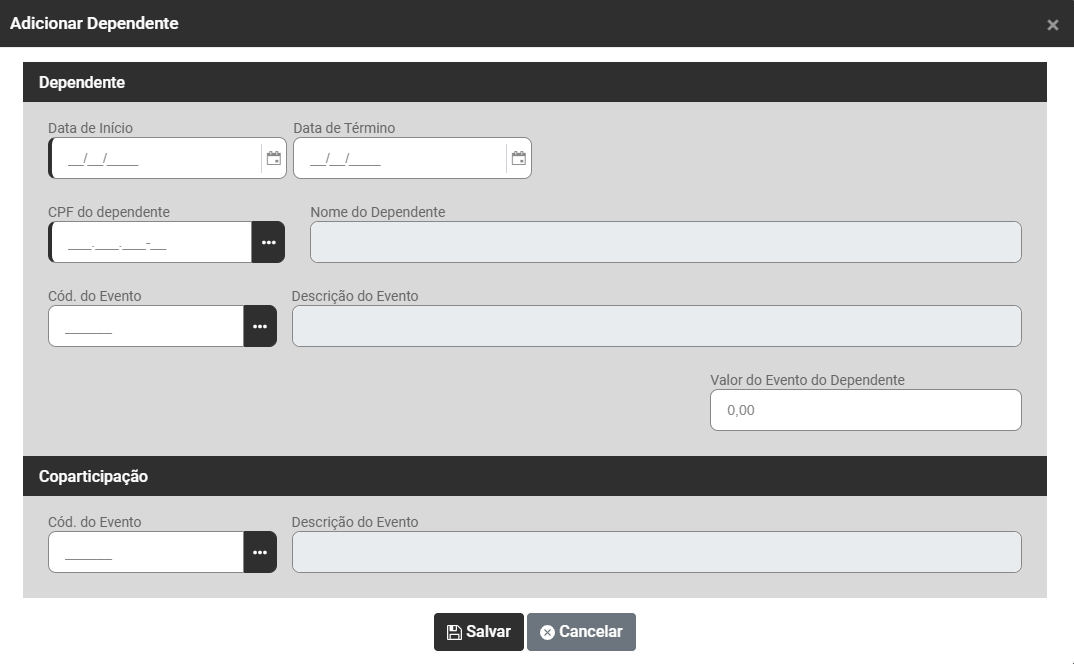 - Nome do Dependente - Será preenchido automaticamente quando definido o CPF do dependente