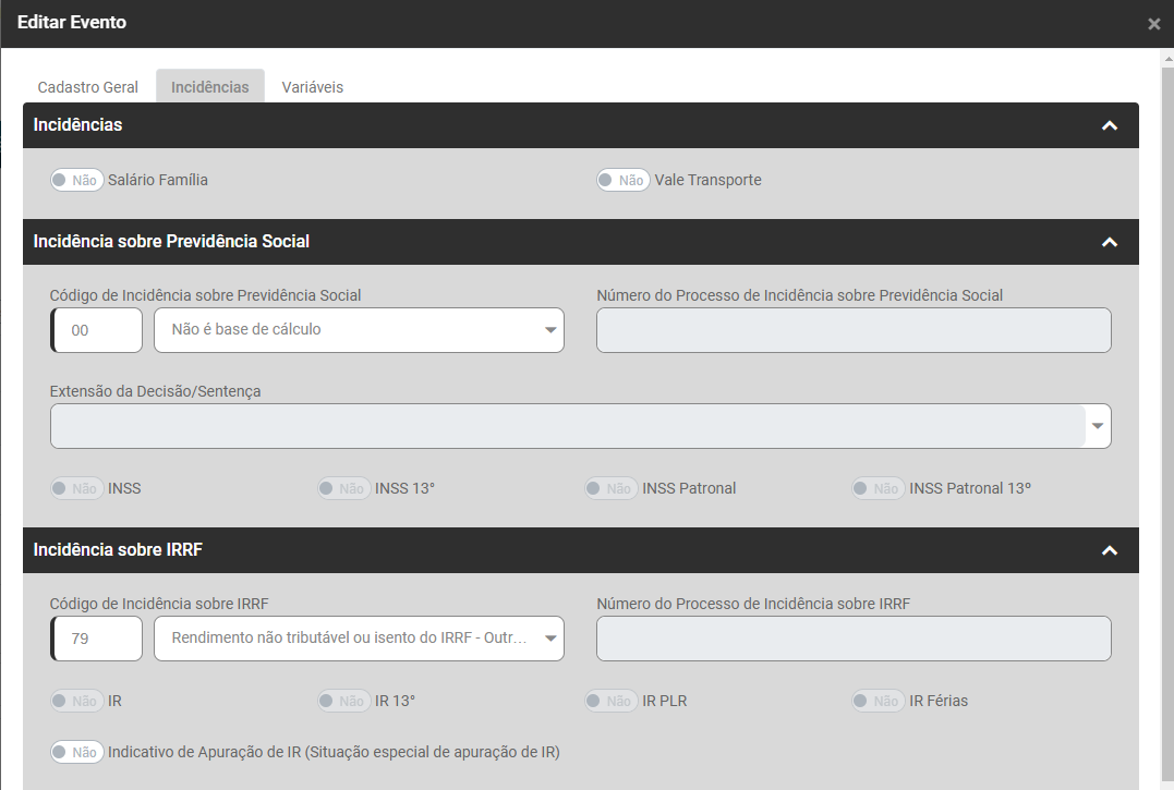 Antes de Iniciar os cálculos verifique e faça a Manutenção dos eventos que serão utilizados (principalmente quanto a incidência de impostos na aba Incidências)