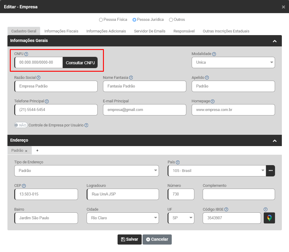 Ação Sugerida: Conferência do CNPJ informado no cadastro