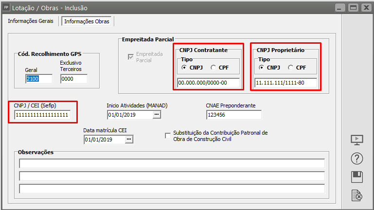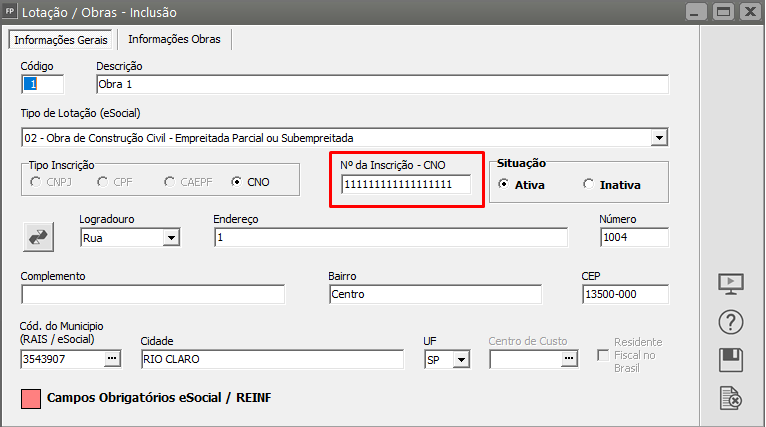 Ação Sugerida: O CNPJ deverá ser um CNPJ ativo no Cadastro de Estabelecimentos e Obras do Ambiente Nacional do eSocial.