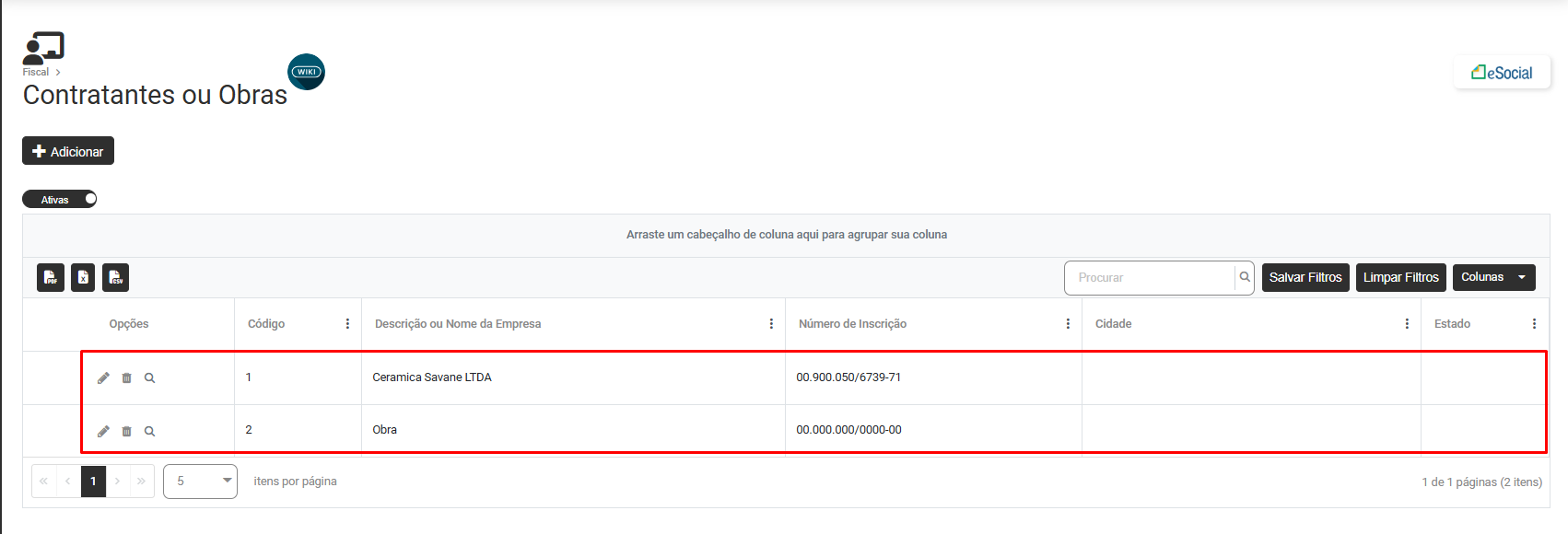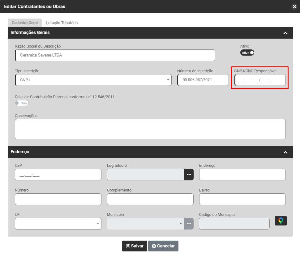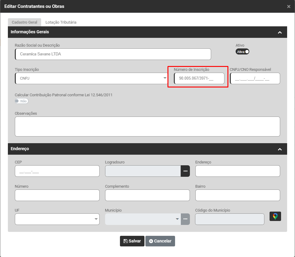 Faça a edição da obra que apresentou rejeição pelo eSocial e corrija a informação cadastrada no campo Nº da Inscrição - CNO