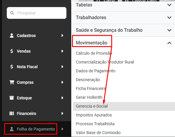 Em seguida envie a carga do evento para o eSocial através do Folha de Pagamento>Movimentação>Gerencia eSocial
