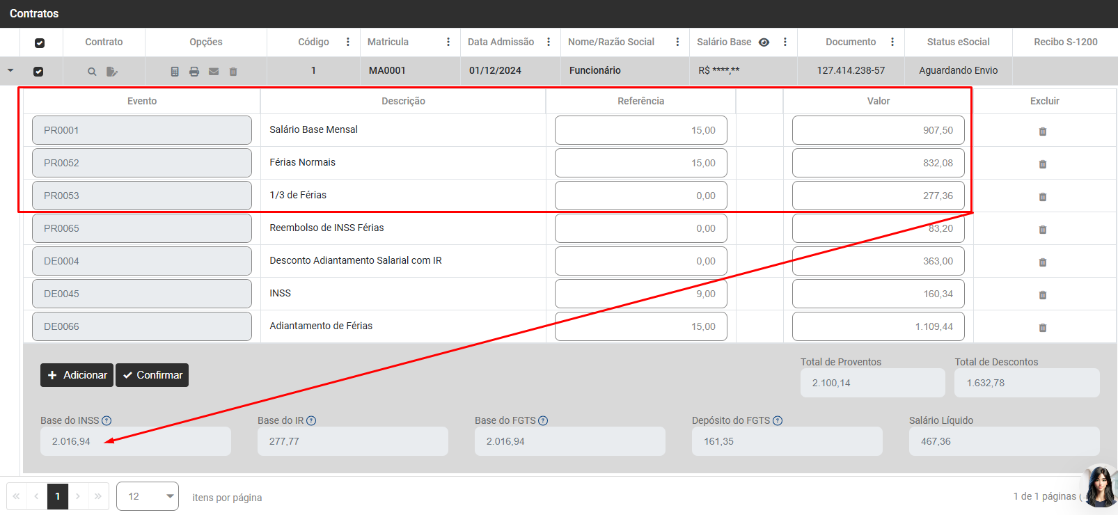 A Base de calculo das contribuições previdenciárias deve ser o total de proventos (-) total de descontos que possuem incidência de INSS