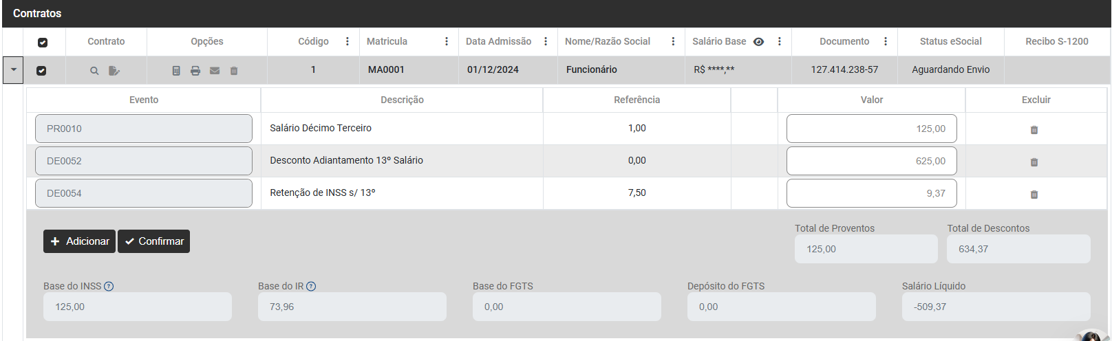 Verifique todos os eventos gerados para o pagamento do 13º salário