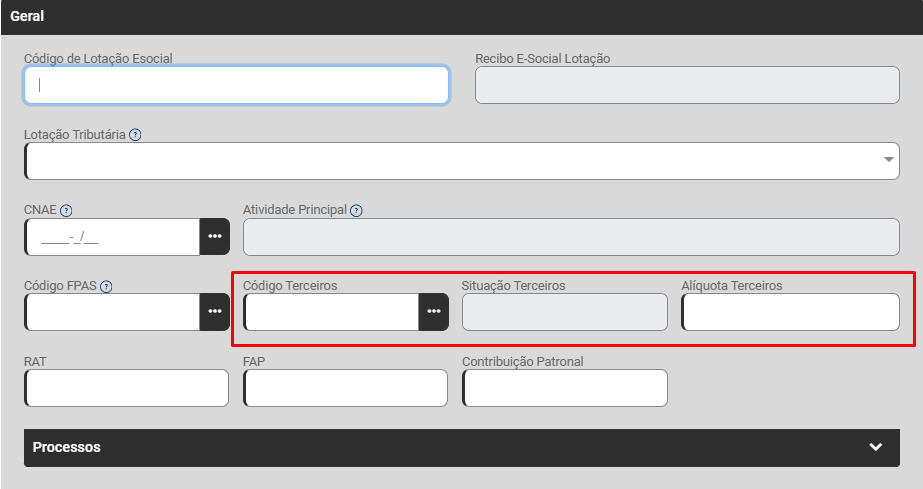 Ação Sugerida: Informar o Código de Terceiro/Alíquota correspondente.