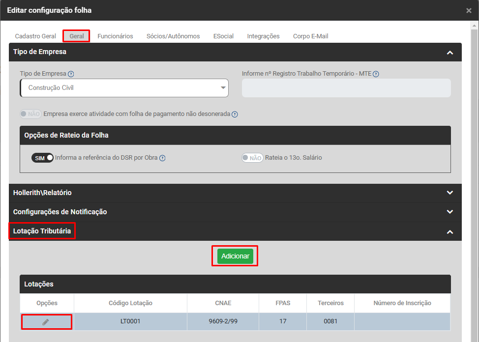 Correção: Acesse as Configurações da Empresa que apresentou a inconsistência e edite as Configurações