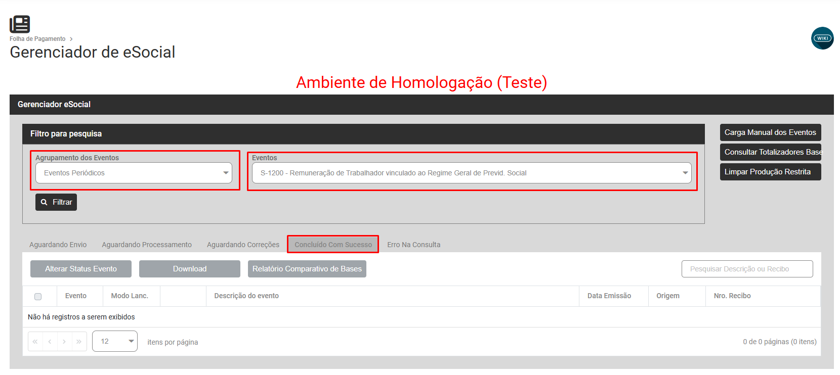 Como Corrigir - Verifique se o evento S1200 está na aba Concluído com Sucesso - com o número do recibo corretamente preenchido