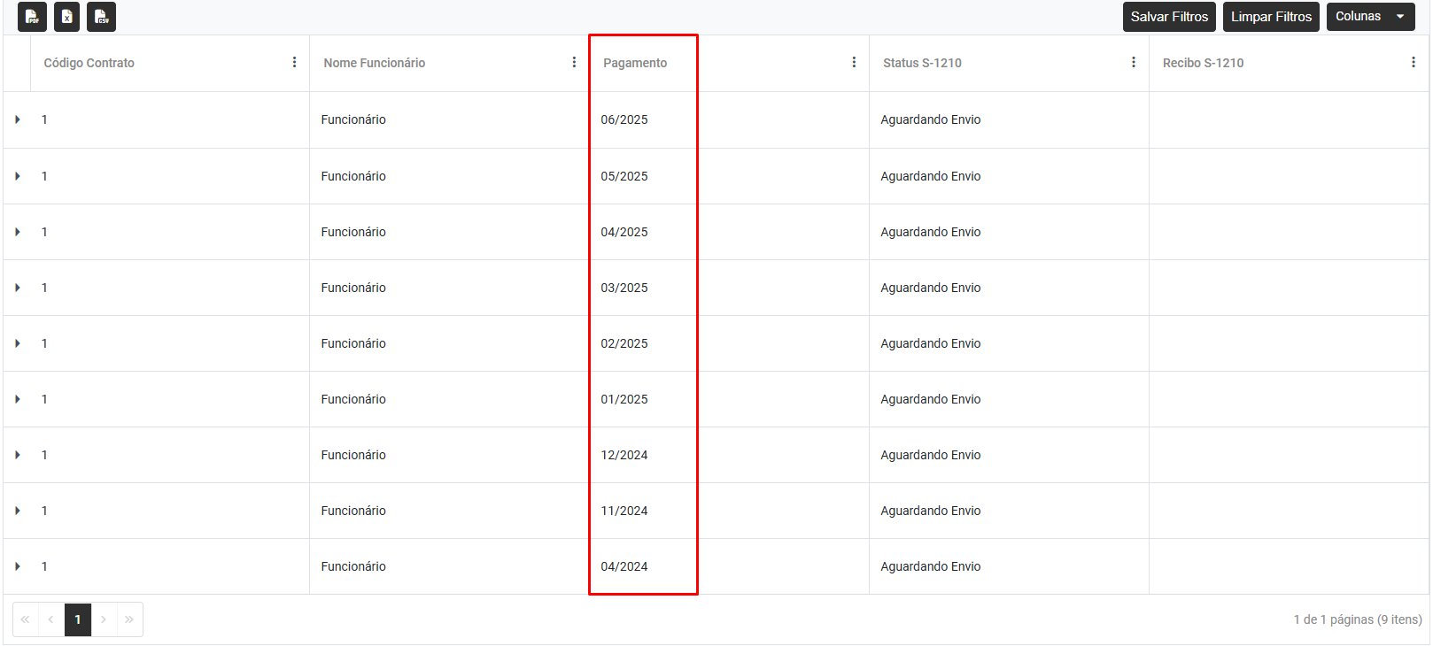 Correção: O evento enviado deve conter a informação correta quanto ao seu período, acesse o menu Folha de Pagamento>Movimentação>Dados de Pagamento