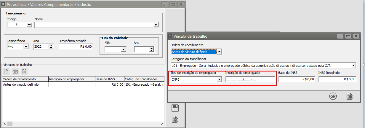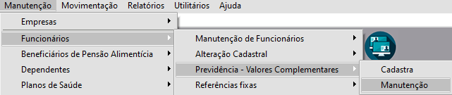 Correção: Acesse o menu Manutenção > Funcionários > Previdência - Valores Complementares > Manutenção