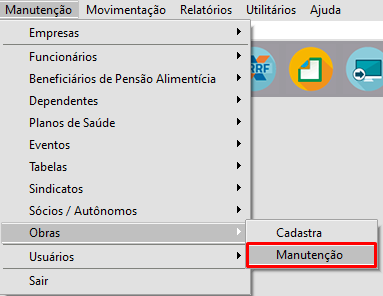 Correção: Acesse o menu Manutenção > Obras > Manutenção