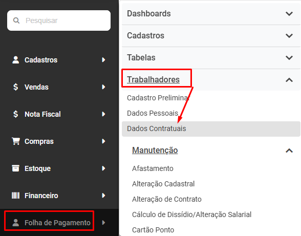 Correção: Acesse o menu Folha de Pagamento>Cadastros>Processos