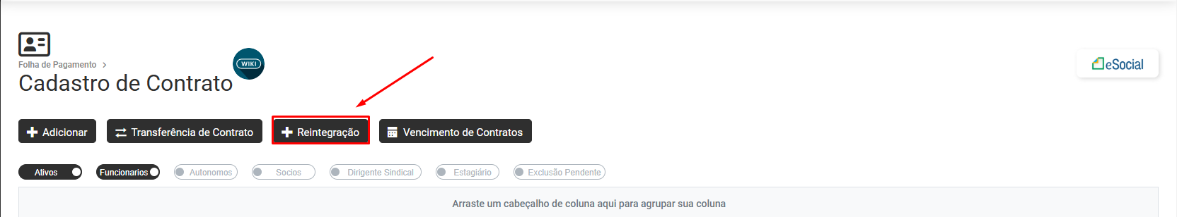 Correção: Acesse o menu Folha de Pagamento>Trabalhadores>Dados Contratuais