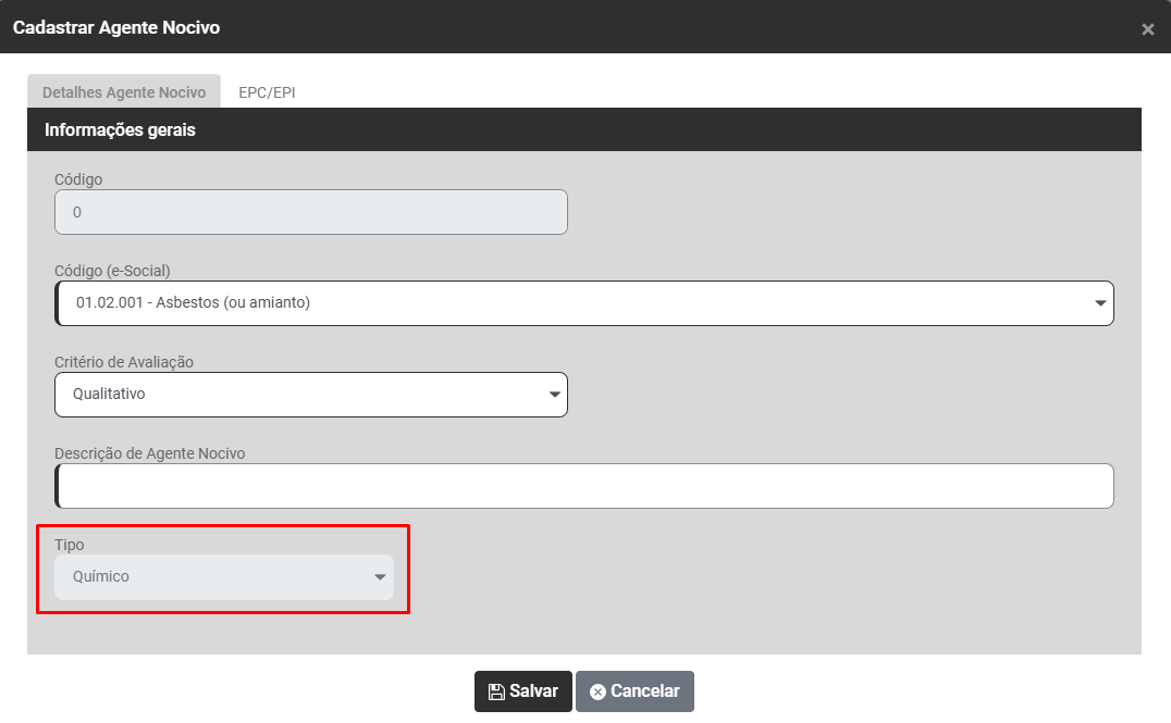 Caso não encontre o agente nocivo cadastrado, faça o cadastro corretamente