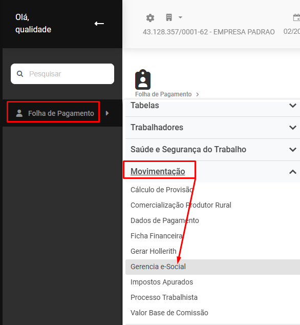 Em seguida acesse Folha de Pagamento>Movimentação>Gerencia eSocial