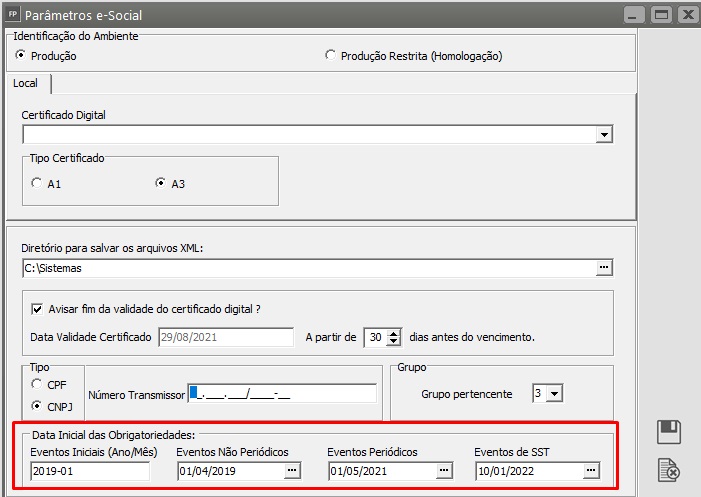 Solução: Corrigir data de envio nos parâmetros da empresa, acesse o menu Manutenção > Empresas > Parâmetros do eSocial e confira as informações da data inicial das obrigatoriedades.