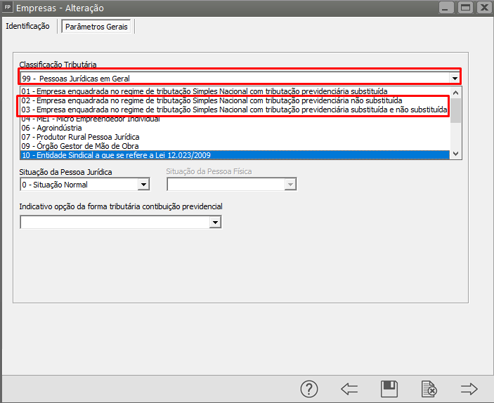 2) Quando informada as Classificações Tributárias diferentes de 02, 03 ou 99