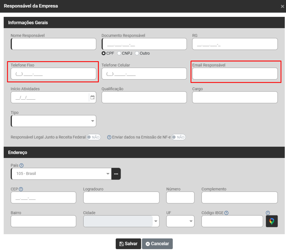 Edite a Empresa que apresentou o erro e acesse a aba Responsável e informe o telefone no campo “telefone fixo" com 10 dígitos, incluindo o DDD”, bem como o email.