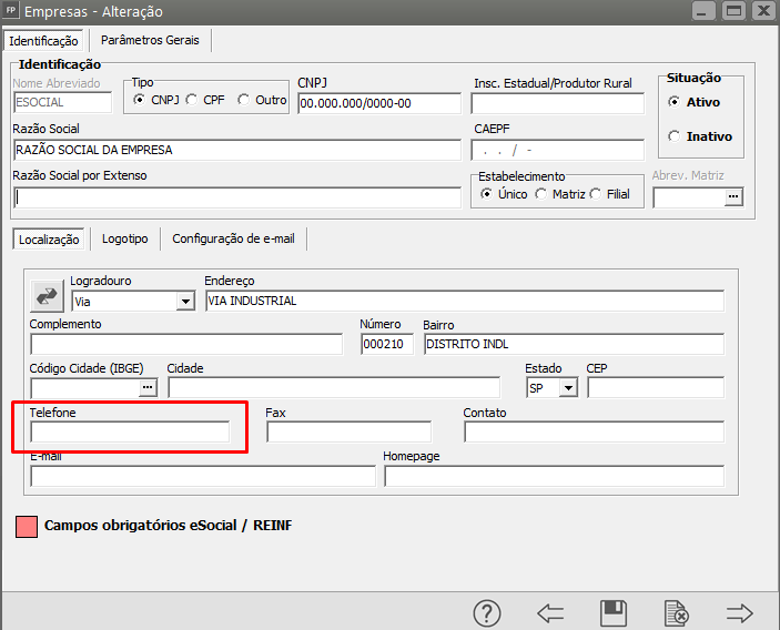 Edite o Cadastro da Empresa e na aba Identificação cadastre o número do telefone da Empresa
