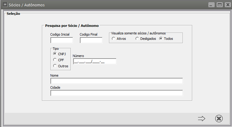 Pesquise pelo Código do Sócio/Autônomo e clique na seta Avança