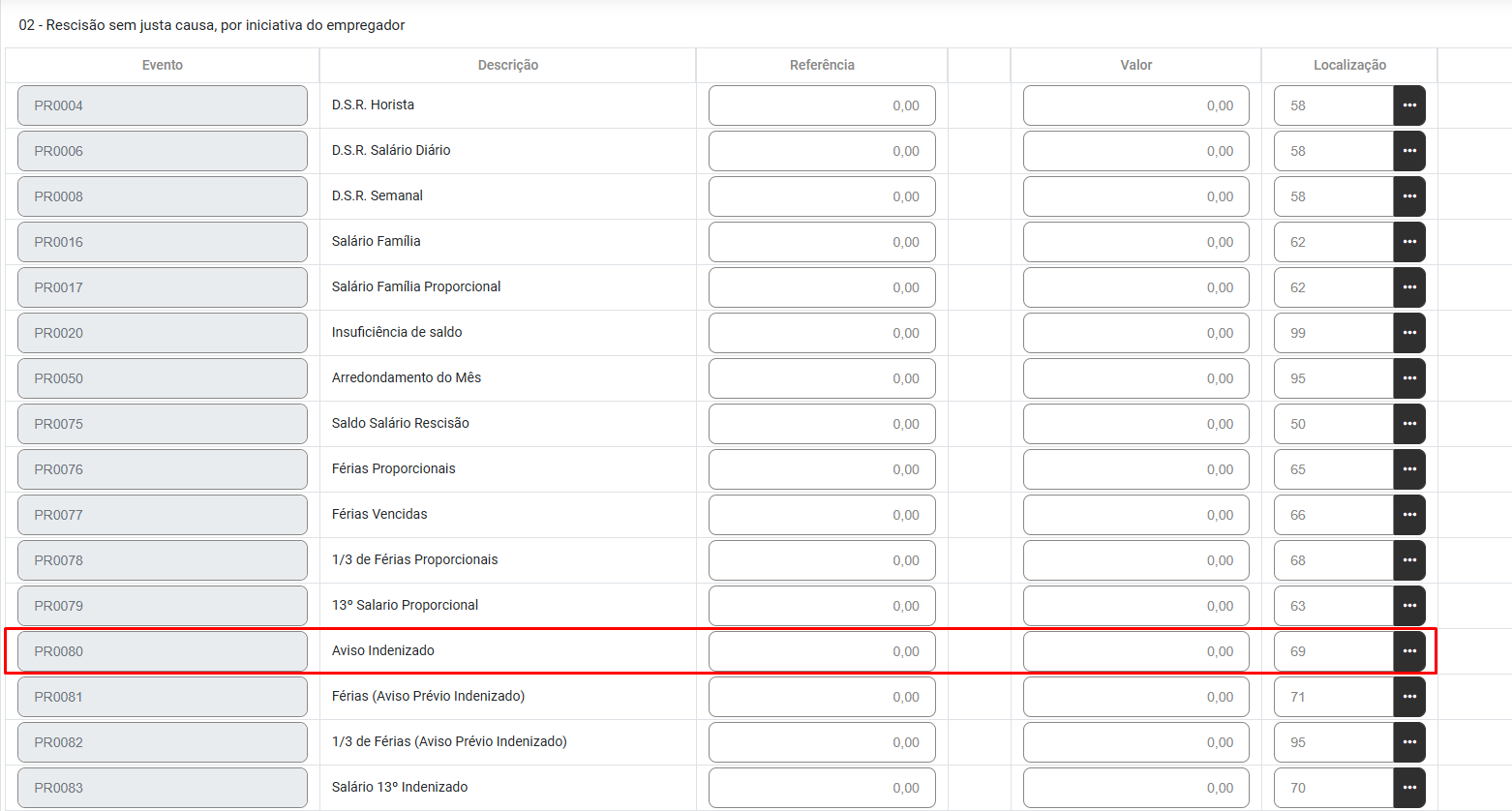 Em seguida gere novamente a rescisão, confirme se o evento PR0080 foi calculado na rescisão