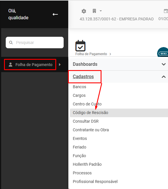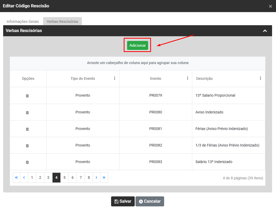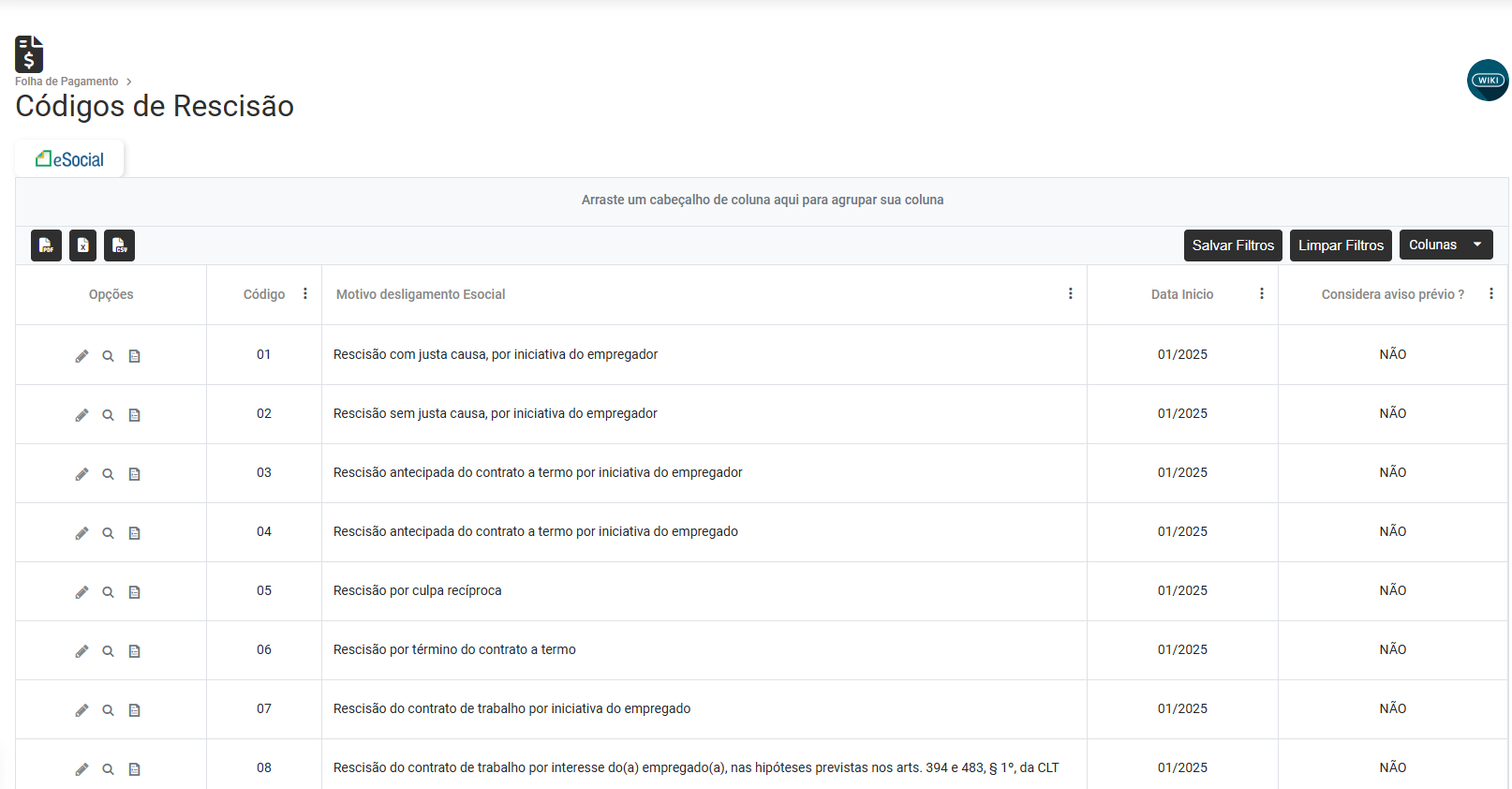 Para essa conferência acesse o menu Folha de Pagamento>Cadastros>Código de Rescisão