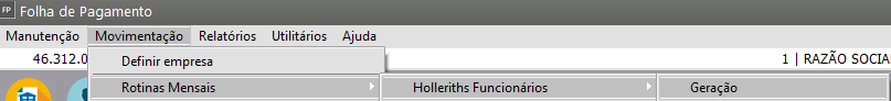 Correção: Acesse o menu Movimentação > Rotinas Mensais > Holleriths Funcionários > Geração