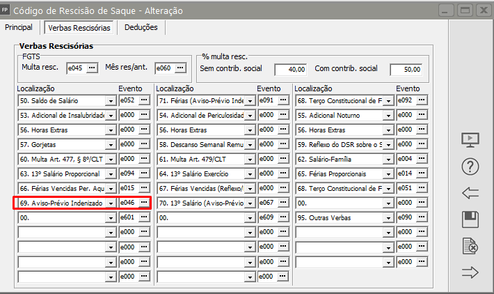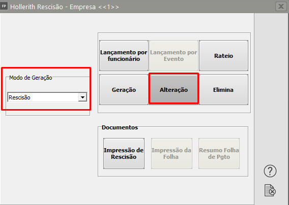 Defina Modo de Geração Rescisão e clique no botão Alteração