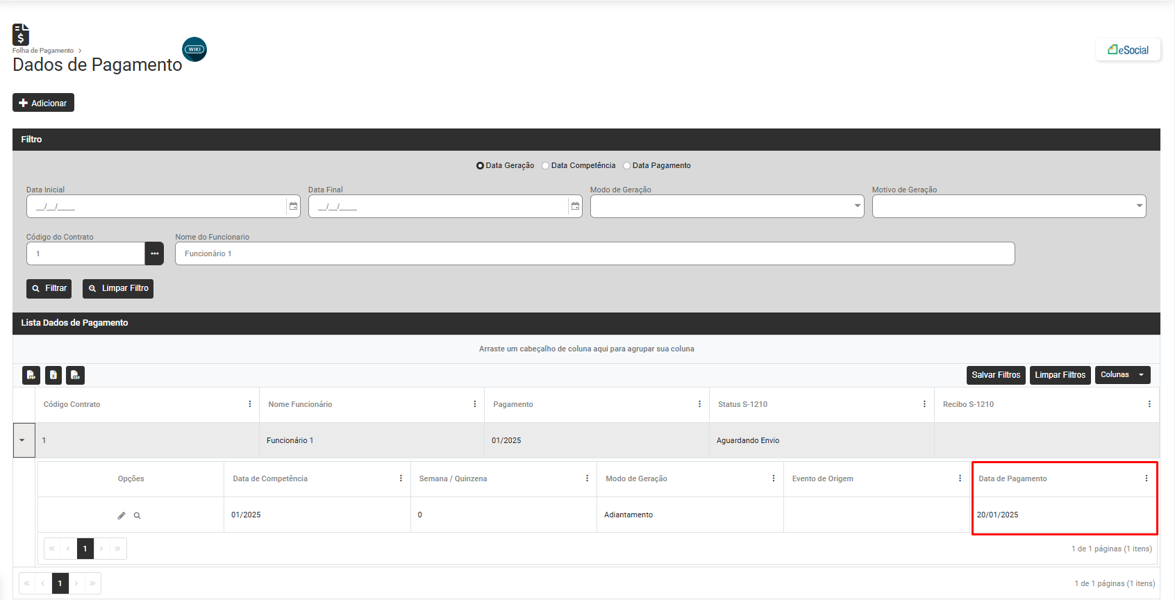 Pesquise pelo Código do Contrato do Trabalhador e na Lista de Dados de Pagamento verifique se existem informações posteriores a data da Rescisão do Trabalhador