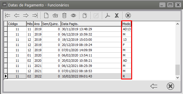 Verifique se o Modo R (Rescisão) foi o ultimo a ser gerado