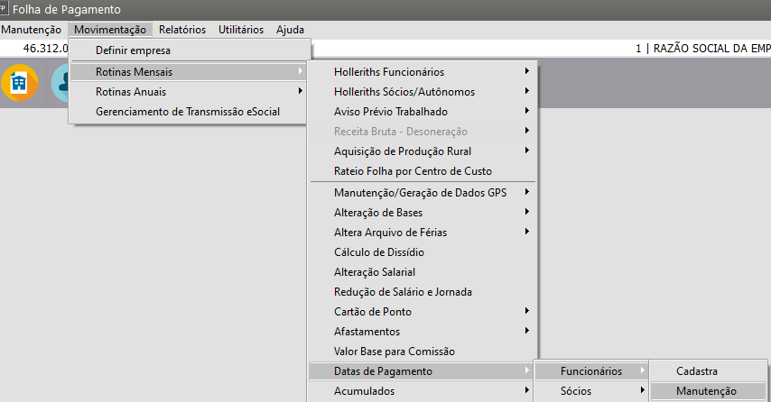 Correção: Não pode existir qualquer evento para o vínculo trabalhista com data posterior a data do desligamento, acesse o menu Movimentação > Rotinas Mensais > Data de Pagamento > Funcionários > Manutenção