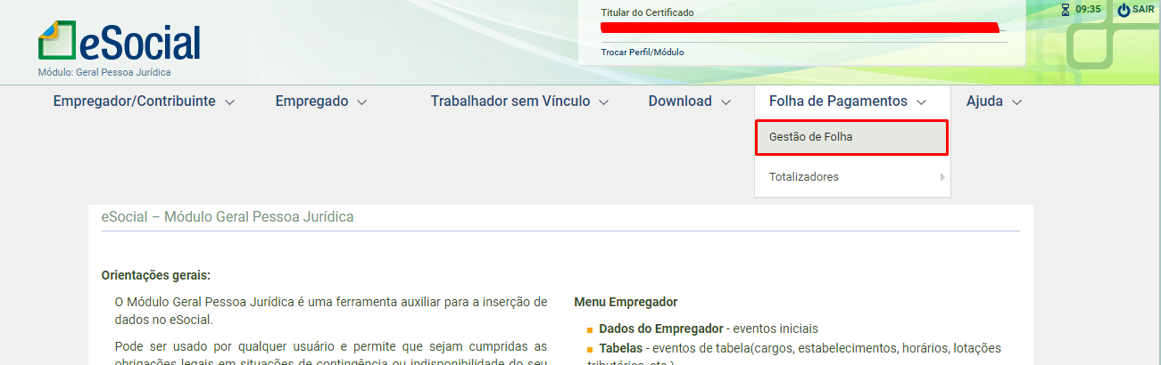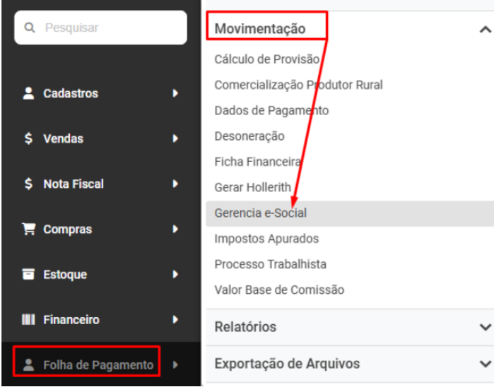 Correção 1 (mês com movimento): Acesse Folha de Pagamento>Movimentação>Gerencia eSocial