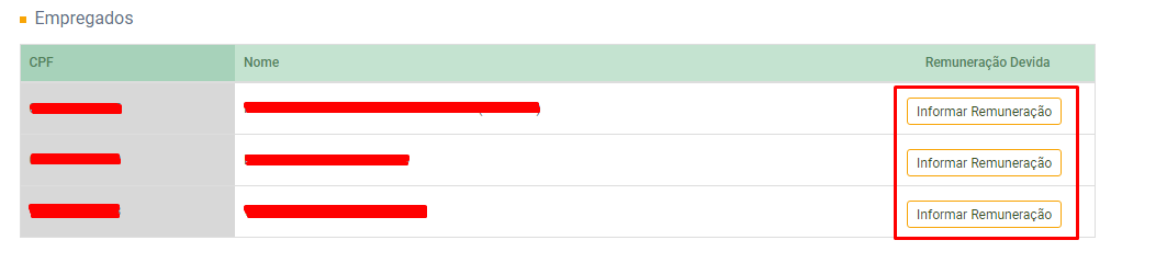 Defina corretamente o período e verifique quais as remunerações estáo com Status informar Remuneração