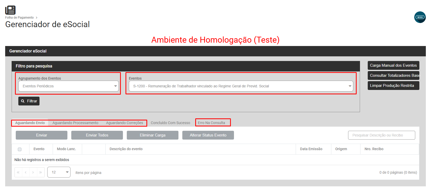 Verifique se para cada um dos eventos (S1200 e S1210) existem cargas pendentes de envio, faça a verificação nas abas Aguardando Envio, Aguardando Processamento, Aguardando Correção e Erro de Consulta