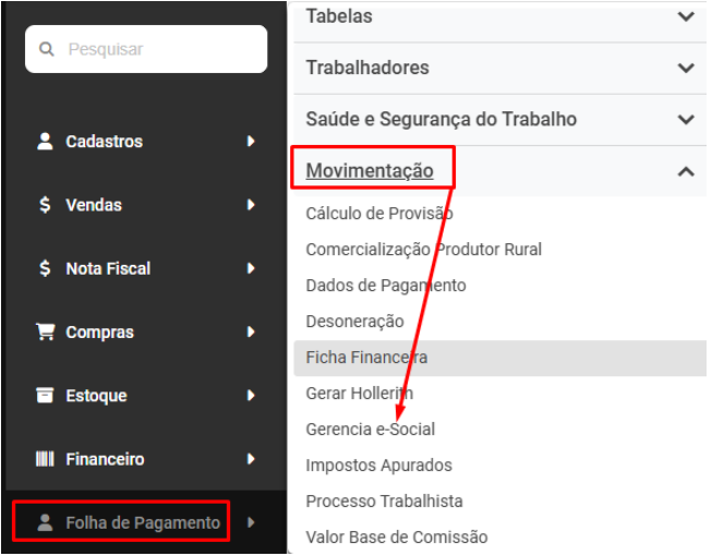 Para Empresa que faz a desoneração da Folha de Pagamento, verifique no menu Folha de Pagamento>Movimentação>Gerencia eSocial