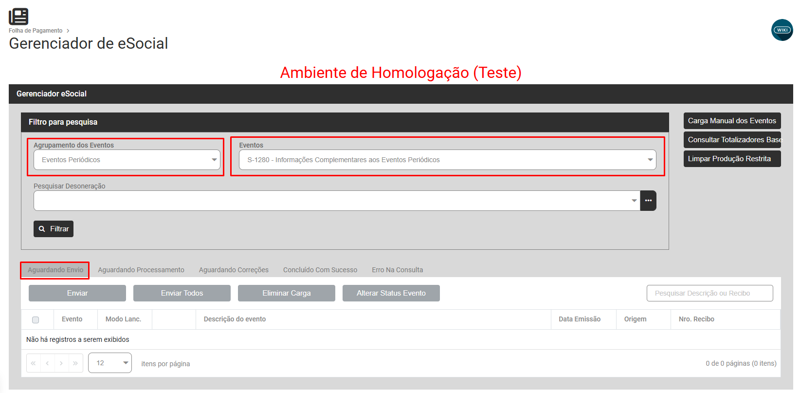 Se a carga do evento S1280 está com Status Aguardando Envio