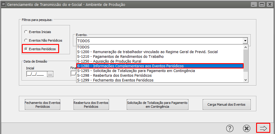 gereclicandonovamente.no botão Fechamento dos Eventos PeriódicosEm seguida envie a nova carga do s1299 que está com o status como "Aguardando Envio"
