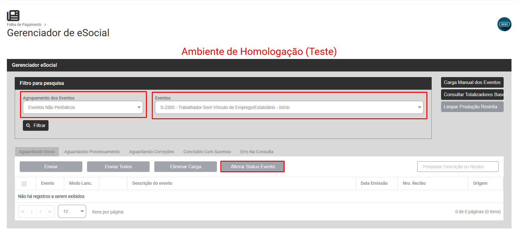 Filtre por Eventos Não Periódicos - S2300 - Aguardando Envio - Selecione o Evento do Trabalhador