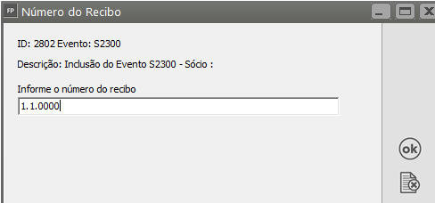 Será apresentada a tela para que você cole o número do recibo copiado do Portal do eSocial, clique em OK