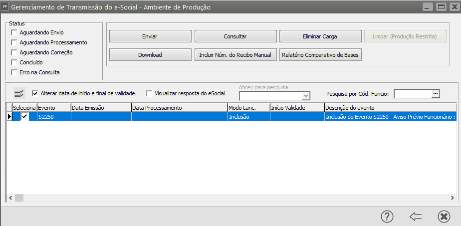 Correção: Caso a carga do evento S2250 (Aviso Prévio) já estiver com Status Concluído no Gerenciamento de Transmissão do eSocial