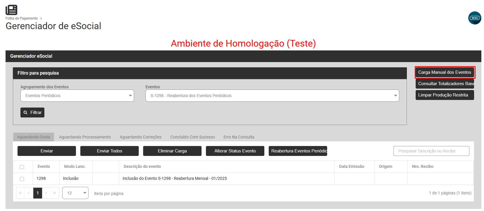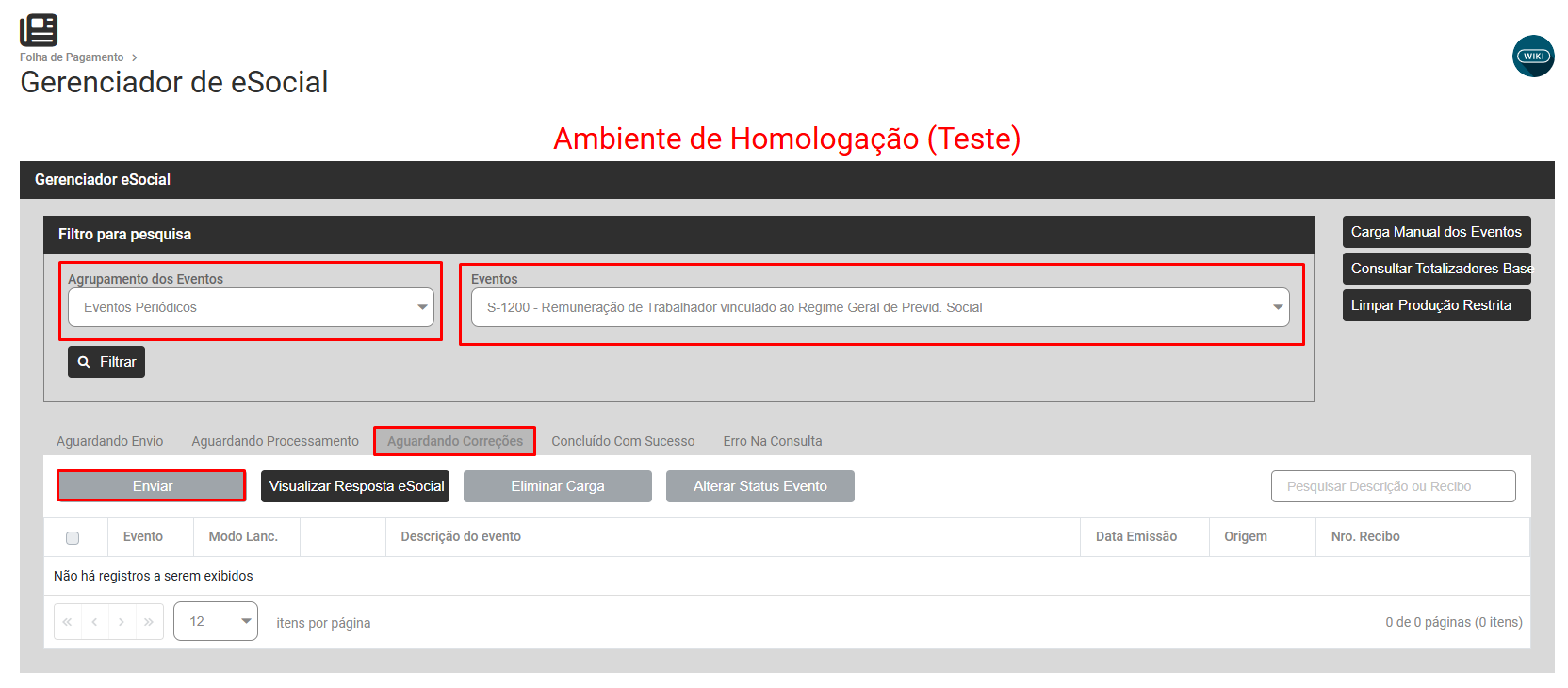 Verifique se a carga do S2200 já está criada e em caso negativo clique no botão Carga Manual dos Eventos