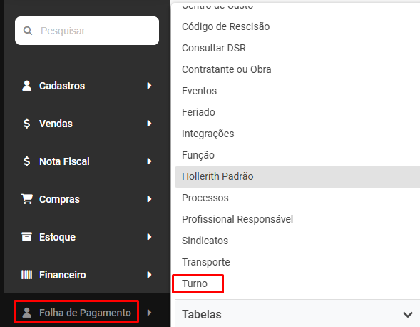 Correção: Ao cadastrar a Jornada existem alguns campos obrigatórios, para visualizar a informação acesse o menu Folha de Pagamento>Cadastros>Turno