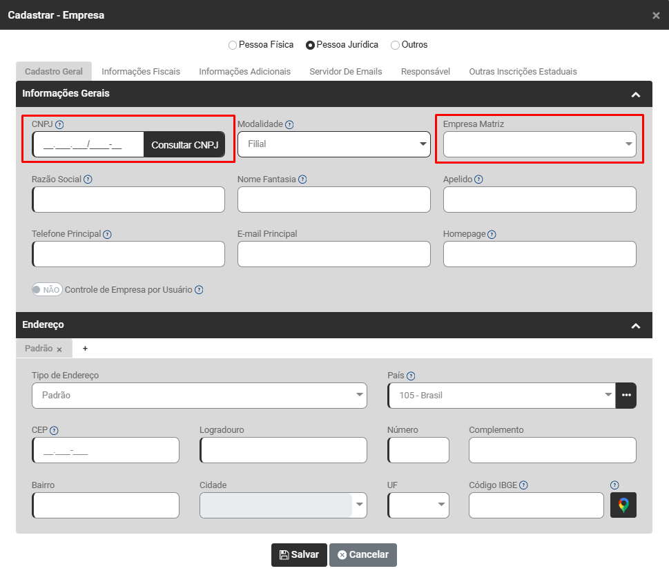 - Empresa Matriz - informe qual é a Empresa Matriz da Filial que foi cadastrada