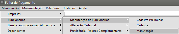 Correção: Acessar o Menu Manutenção > Funcionários > Manutenção de Funcionários > Manutenção