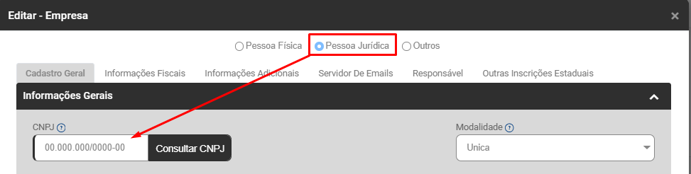 Correção: Acesse a Lista de Empresas e edite a Empresa que apresentou a inconsistência