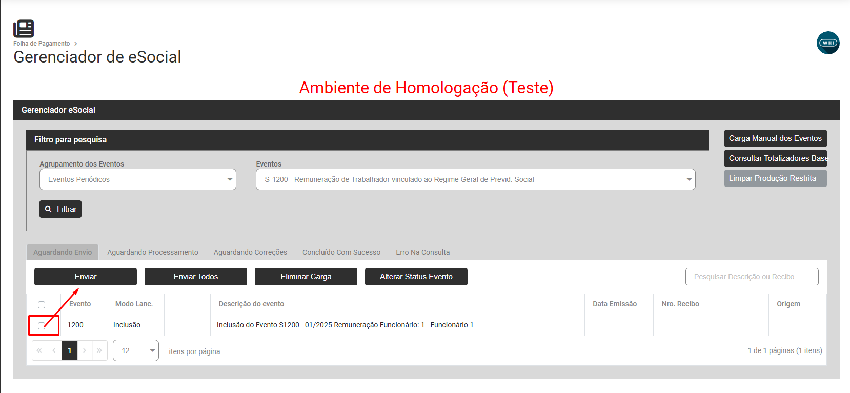 Se o evento S1200 não foi enviado para o Portal do eSocial, selecione o evento e faça o envio do mesmo