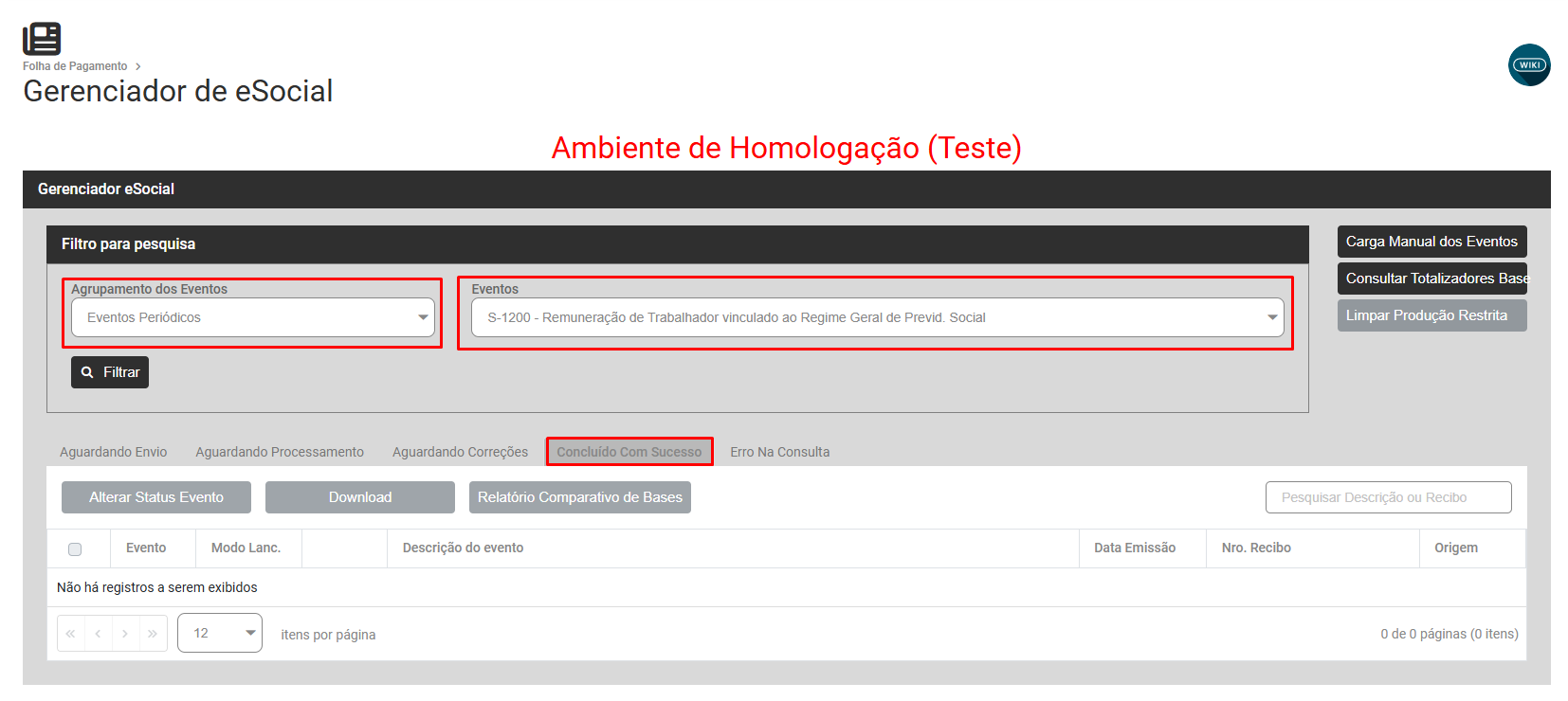 Filtre por Eventos Periódicos S1200 - Concluido com Sucesso